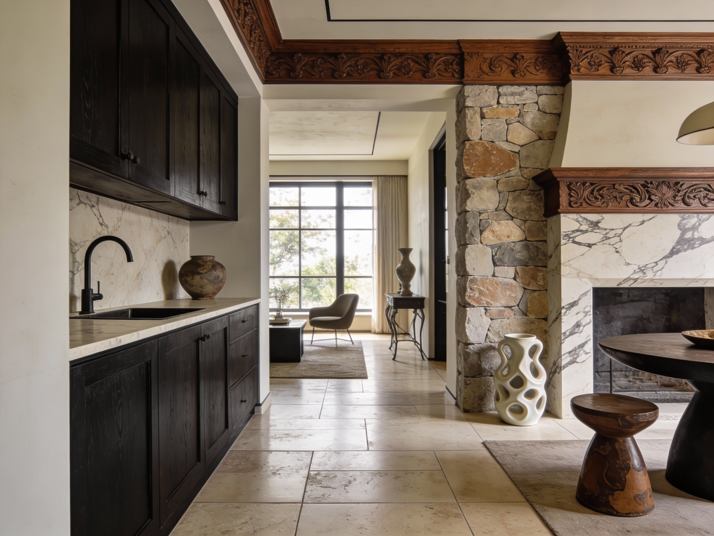 La clave está en el equilibrio. El eclecticismo funciona cuando hay una base sólida —material, cromática y conceptual— que sostiene el conjunto. En este contexto, los materiales continuos y versátiles juegan un papel fundamental, actuando como hilo conductor entre estilos, épocas y lenguajes.